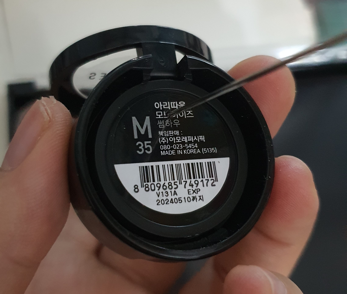 에뛰드 싱글섀도우는 저 위치에 구멍이 있으니 잘 찾으신 후 찔러서 구멍을 뚫고 힘을 줘서 꾹 누르시면 됩니다